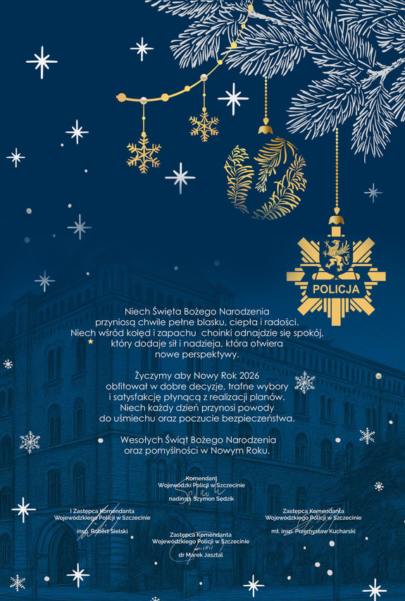 Życzenia Świąteczne Komendanta Wojewódzkiego Policji w Szczecinie Dodano: 23.12.2025
