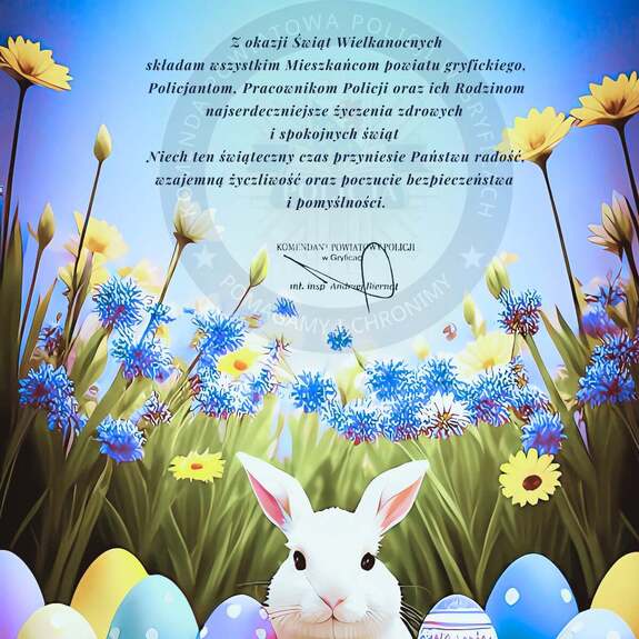 Życzenia Komendanta Powiatowego Policji w Gryficach z okazji Świąt Wielkanocnych -