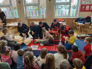 "BYSTRY PRZEDSZKOLAK" - WIZYTA WSZYSTKICH SŁUŻB RATUNKOWYCH W PRZEDSZKOLU I NAUKA PIERWSZEJ POMOCY Z MISIEM GUSTWEM