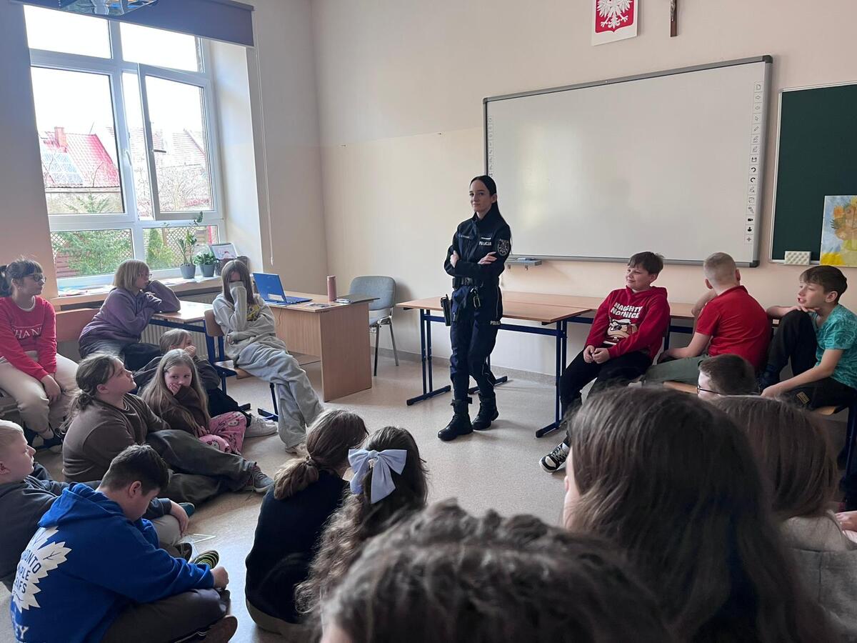 Spotkanie funkcjonariuszek z młodzieżą w Szkole Podstawowej nr 1 w Trzebiatowie z Oddziałami Integracyjnymi im. Jana Kochanowskiego na temat odpowiedzialności prawnej, i zagrożeń jakie niesie ze sobą korzystanie w sposób nieodpowiedzialny z sieci internetowej. Policjantki podczas spotkania rozmawiały z młodymi ludźmi o współczesnych zagrożeniach i przede wszystkim ostrzegały o konsekwencjach podejmowanych przez siebie decyzji.