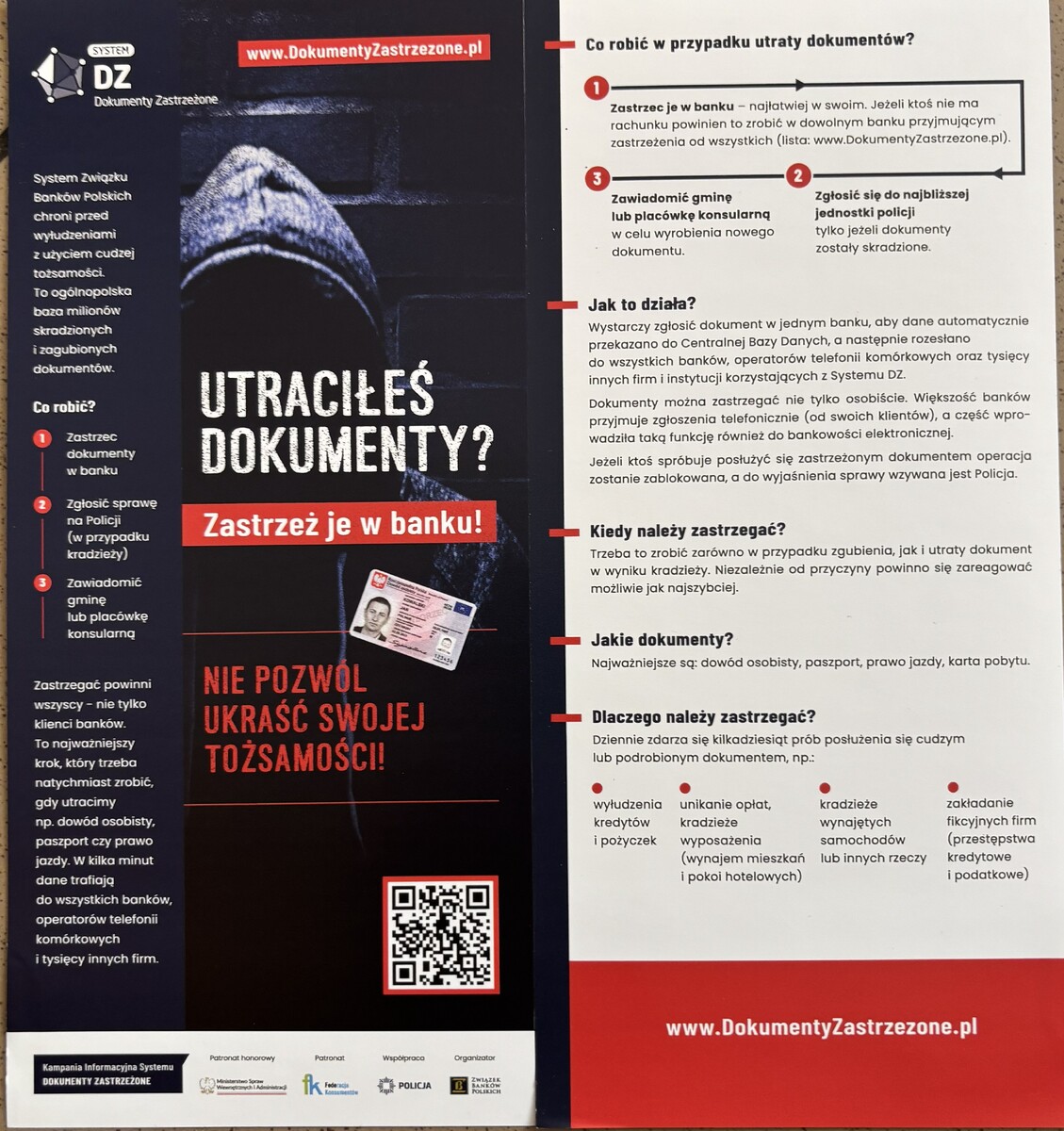 Omówiony został również problem tzw."kradzieży tożsamości". Wskazano co robić w przypadku utraty, lub zagubienia dokumentów.